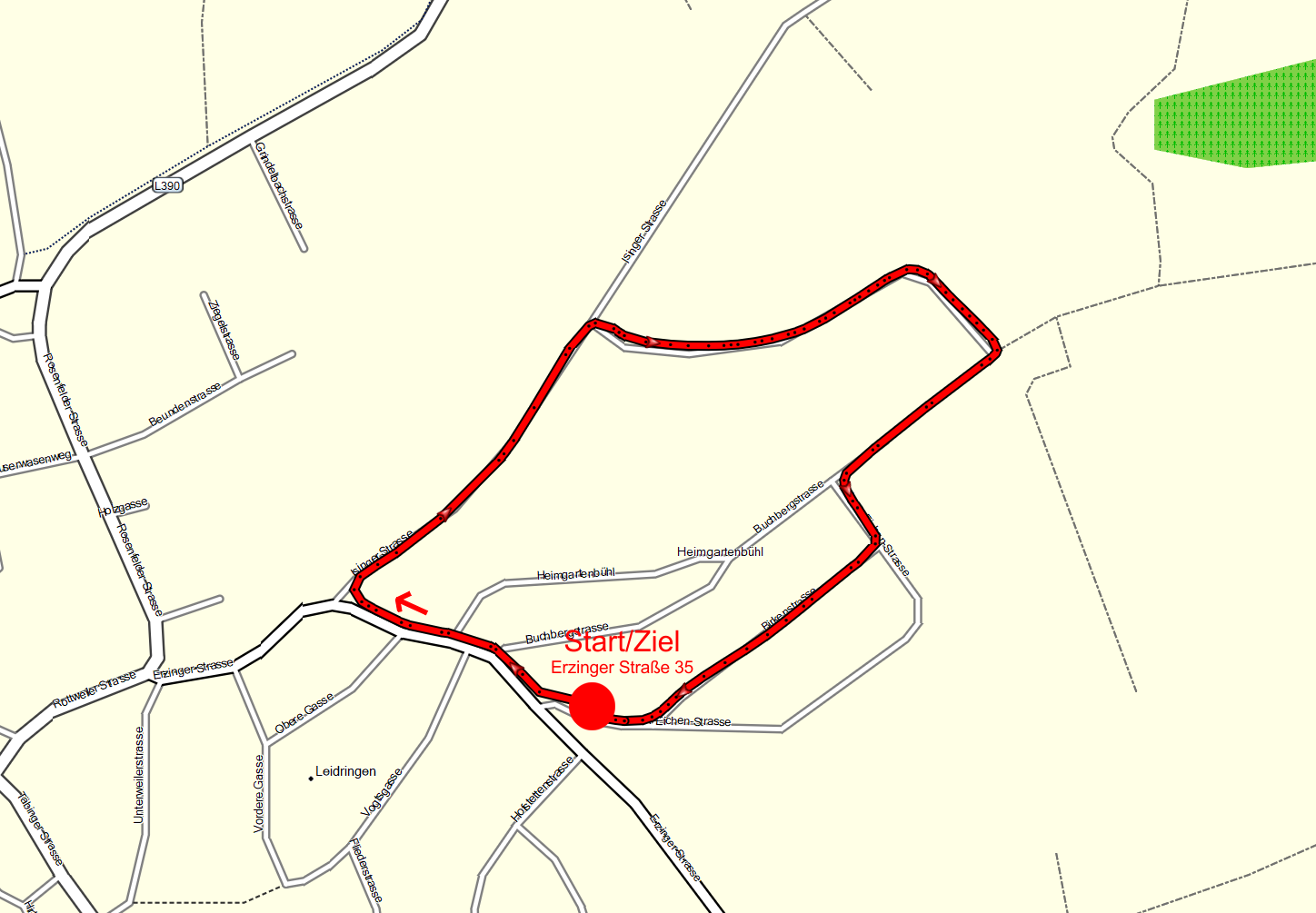 Nun scharf rechts in die Isinger Straße abbiegen. Dort bis nach dem Ortsendeschild bleiben. Nun den nächsten Weg (Betonspurweg) nach rechts abbiegen. Es geht den "Buchberg" hoch. Oben angelangt, nach rechts in Richtung Ort abbiegen. Die erste Straße dann links und gleich wieder rechts in die Birkenstraße. Sie gelangen geradeaus zurück ans Gästehaus. |